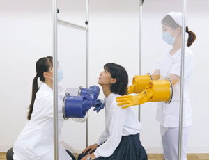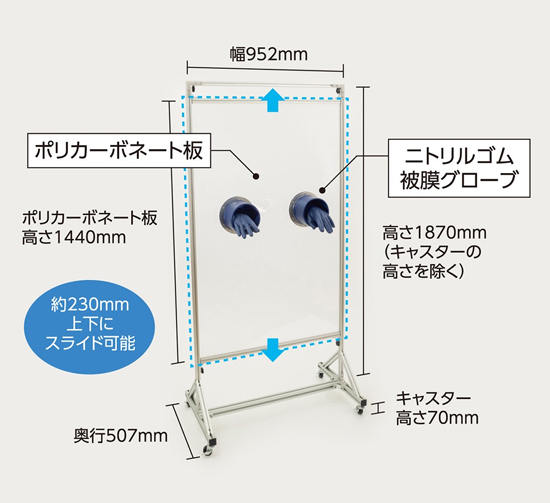ポリカーボネート板とニトリルゴム被膜グローブでウイルスを遮断