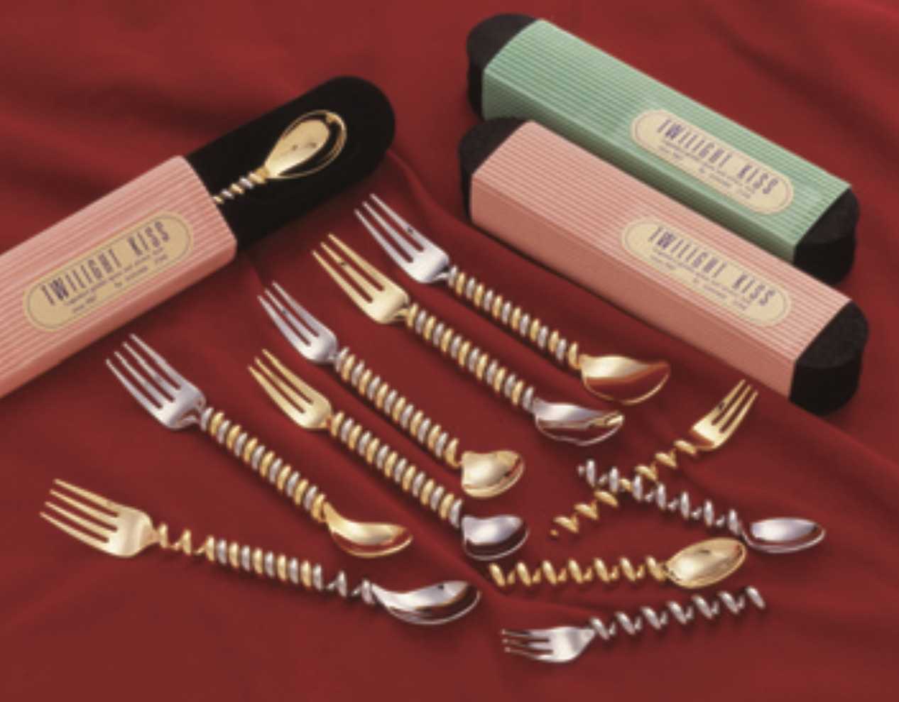 | 1987年4月 | 金・銀のスプーンとフォークが、螺旋状に結合するトワイライト・キッスと言う最初の商品を森 直人が独自開発し実用新案出願。株式会社サマーゾーンと言う屋号をつけて製造を開始する